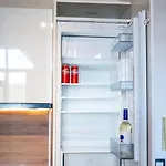 Het appartement biedt koffie- en theevoorzieningen en een complete keuken met een koelkast en een oven aan.